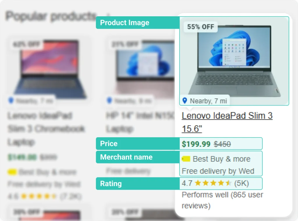 If users can see at a glance that your card is “20 percent off” or “Black Friday deal,” you will often win the click even if you are not the cheapest option.