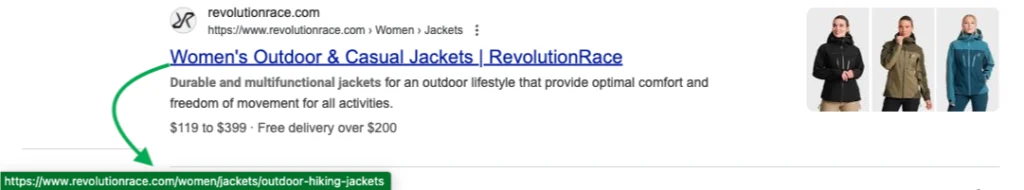 For most shopping-intent queries, Google surfaces product grids: visual, card-based results that appear above or alongside traditional listings. These grids pull users straight into product discovery without requiring a click into category pages first.